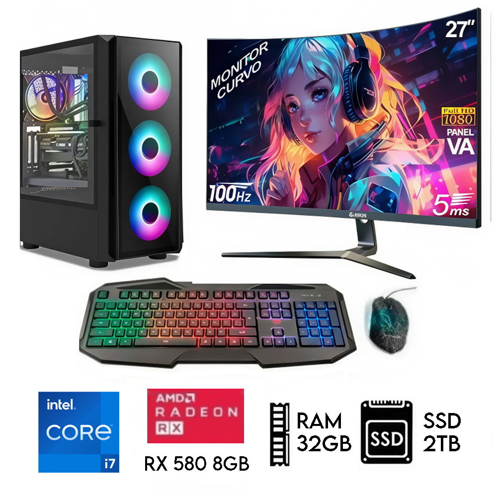 Cuenta con un Disco Duro Solido de SSD 2TB, una memoria RAM de 32GB y la tarjeta de Video RX 580 8GB que va a permitir ejecutar los programas que requieran gráficos altos e intermedios. Todas las piezas de esta PC cuentan con garantía de 12 meses ante fallas de fábrica.