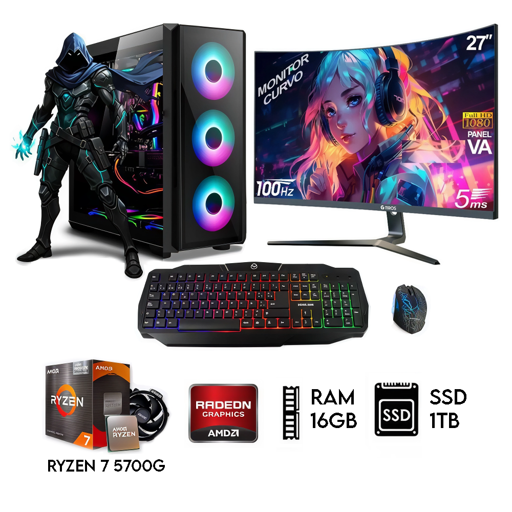 Computadora PC GAMER RYZEN 7-5700G Ram 16GB Disco SSD 1TB Monitor 27″ FULL HD