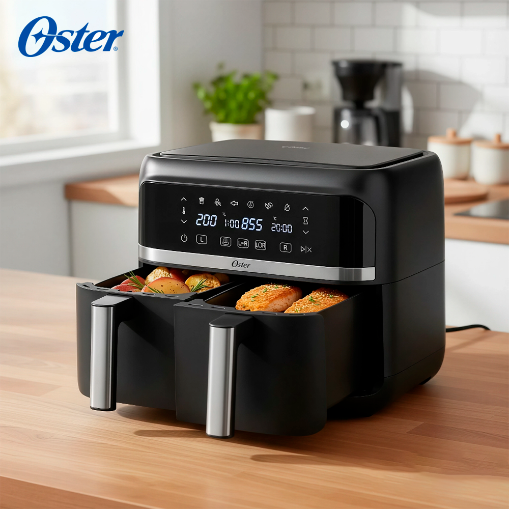 Freidora De Aire Dual Oster® Con Recubrimiento Antiadherente Color Negro 7.6L